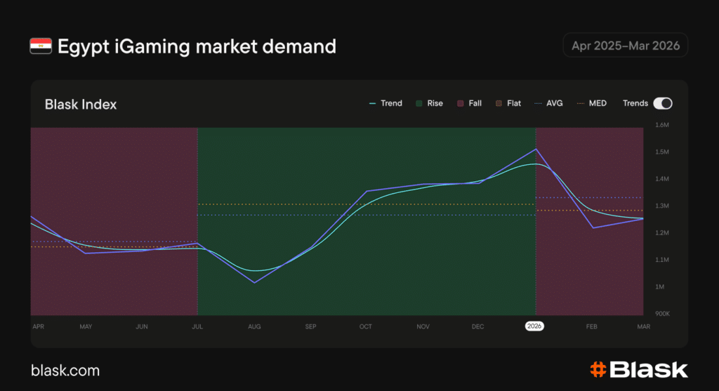 December brought the sharpest movement of the year, as AFCON 2025 kicked off in Morocco on December 21 and concentrated national attention around Egypt’s campaign. Once the group stage passed, demand dropped back quickly and settled at a lower level through early 2026.